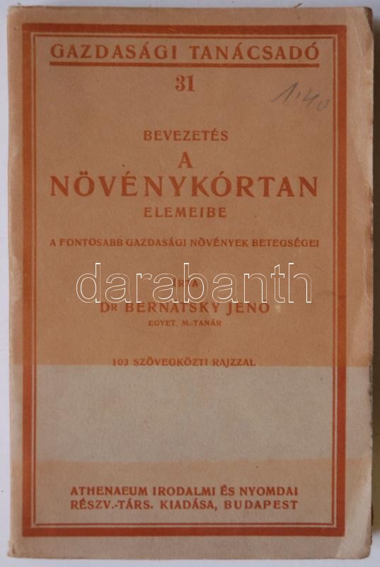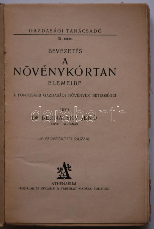 Bernátsky Jenő: Bevezetés a növénykórtan elemeibe. 102 szövegközti rajzzal. Bp., én. Athenaeum