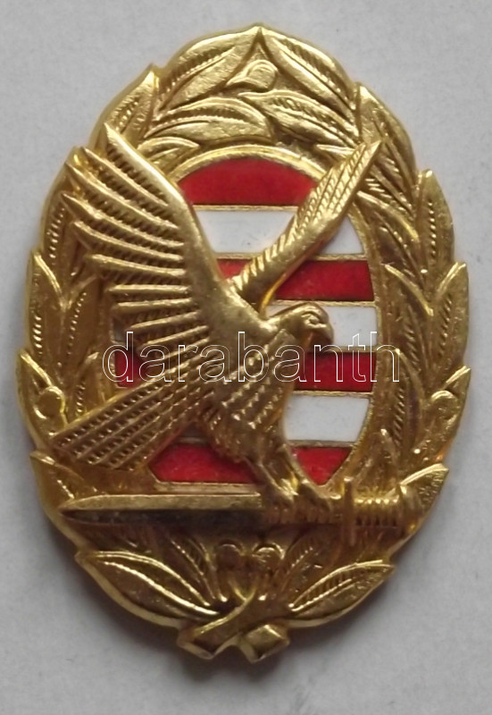 Aranyozott jelvény tűzzománc Árpád-sávos középrésszel és kardon szétterjesztett szárnyú turullal T:2