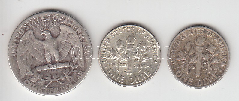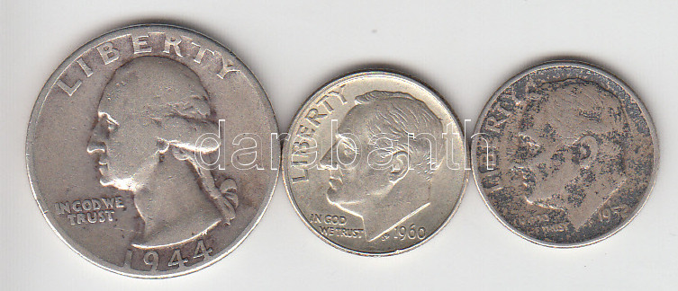 Description: Amerikai Egyesült Államok 1944. 1/4$ Ag "Washington" 1952. 1d Ag + 1960. 1d Ag T:3,2-