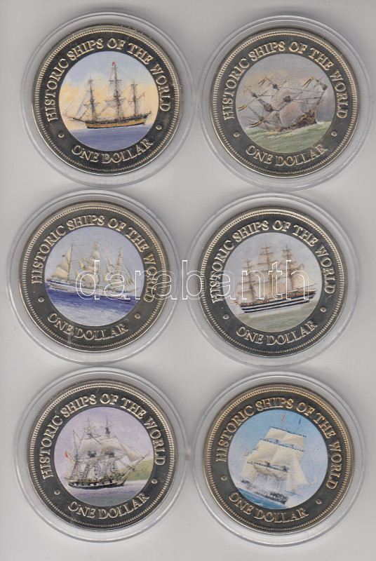 Description: Cook-szigetek 2003. 1$ CuNi (6xklf) "A történelem híres hajói" sorozat T:PP Csak 2000db, dísztokabn és tanúsítvánnyal!