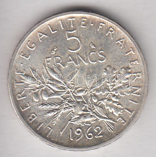 https://www.darabanth.com/en/168-Online-auction/168.0/Numismatics/Foreign-coins~2000358/Franciaorszag-1962-5Fr-Ag-T2-3Cbr3EFrance-1962-5-Francs-Ag-CXF~II564509