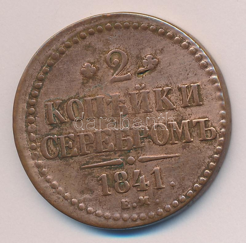 https://www.darabanth.com/en/168-Online-auction/168.0/Numismatics/Foreign-coins~2000358/Oroszorszag-1841EM-2k-Cu-T3-3Cbr3ERussia-1841EM-2-Kopeks-Cu-CF~II542670