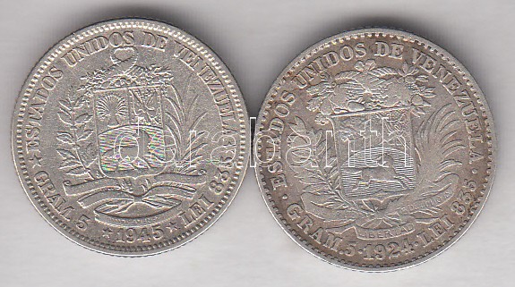 https://www.darabanth.com/en/168-Online-auction/168.0/Numismatics/Foreign-coins~2000358/Venezuela-1924-1B-Ag-plus-1945-1B-Ag-T2-3-3Cbr3EVenezuela-1924-1-Bolivar-Ag-plus-1945-1-Bolivar-Ag-C~II564628