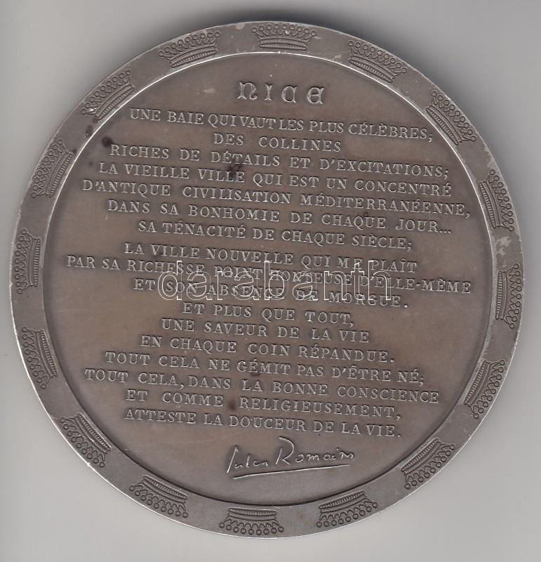 Franciaország 1987. "Nizza városi érdemérem - NICAEA CIVITAS" jelzett ... https://www.darabanth.com/en/168-Online-auction/168.0/Numismatics/Foreign-precious-commemorative-medals-plaques-badges~2000366/Franciaorszag-1987-Nizza-varosi-erdemerem--NICAEA-CIVITAS-jelzett-Ag-emlekerem-190g68mm~II566277