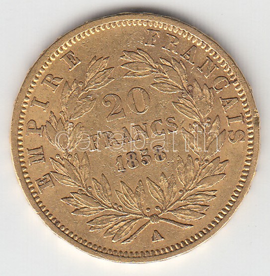 https://www.darabanth.com/en/168-Online-auction/168.0/Numismatics/Hungarian-and-foreign-gold-coins~2000356/FranciaorszagMasodik-Csaszarsag-1858A-20Fr-Au-III-Napoleon-Parizs-642g0900-T2--3Cbr~II565876