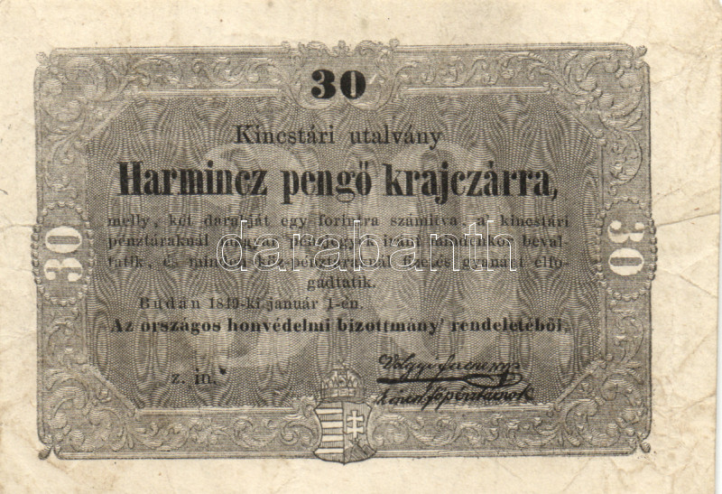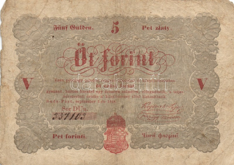 https://www.darabanth.com/en/168-Online-auction/168.0/Numismatics/Hungarian-banknotes~2000353/1848-5Ft-Kossuth-banko-piros-TIII-plus-1849-30Kr-Kincstari-utalvany-TIII~II563423