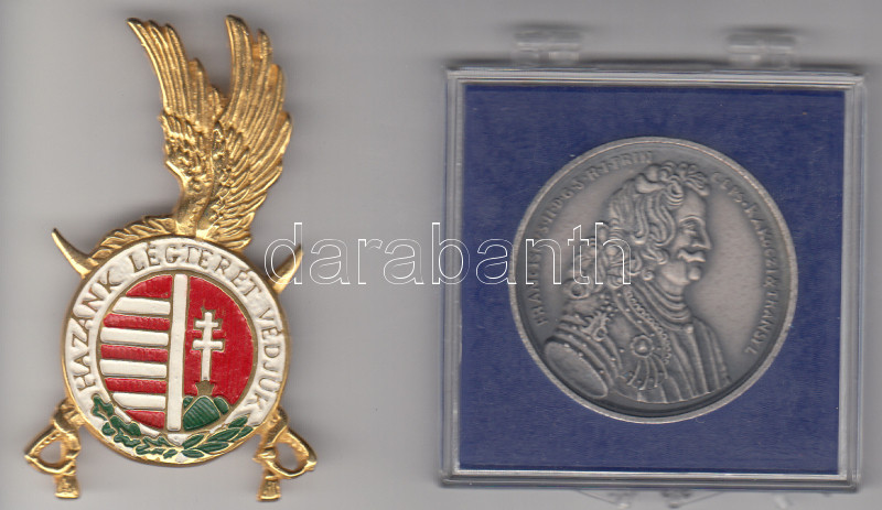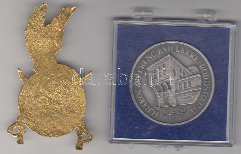1985. "Szécsény - II. Rákóczi Ferenc Emlékére Rodostó 1753" fém emlékérem (42mm) plasztik tokban T:1 + "Hazánk légterét védjük" festett plakett T:2