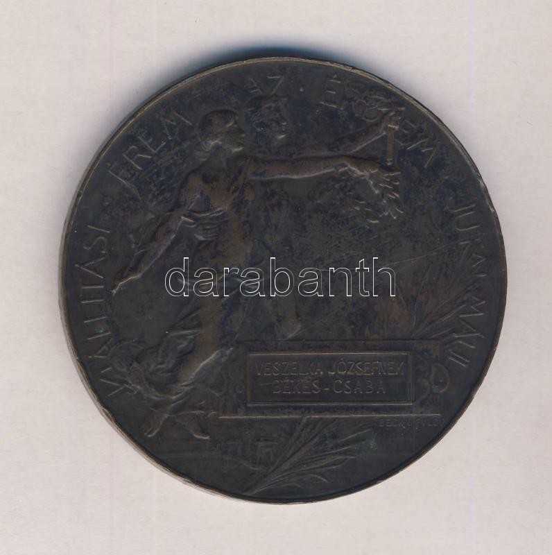 Beck Ö(tvös) Fülöp (1873-1945) "1896-iki Ezredéves Országos Kiállítás / kiállítási Érem Az Érdem Jutalmául" Br emlékérem (70mm) T:2-