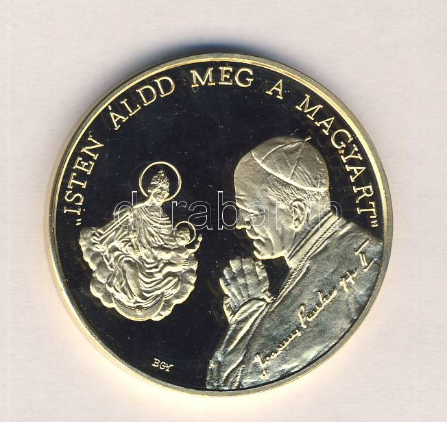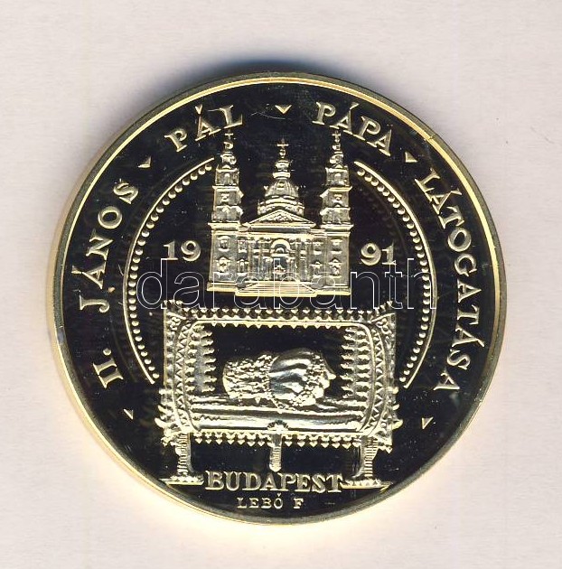 Bognár György (1944-) / Lebó Ferenc (1960-) 1991. "II.János Pál pápa látogatása - Budapest" aranyozott emlékérem (d=43mm) T:PP