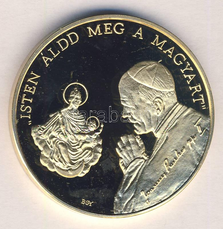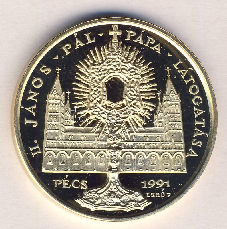 Bognár György (1944-) / Lebó Ferenc (1960-) 1991. "II.János Pál pápa látogatása - Pécs" aranyozott emlékérem (d=43mm) T:PP