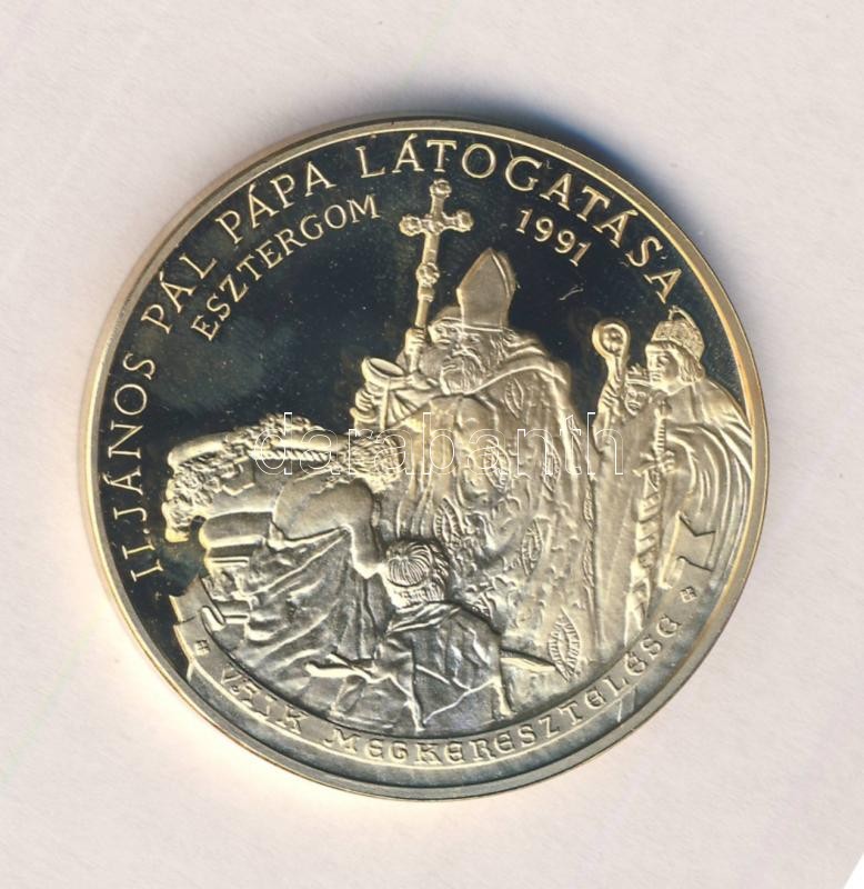 Bognár György (1944-) 1991. "II.János Pál pápa látogatása - Esztergom" aranyozott emlékérem (d=43mm) T:PP