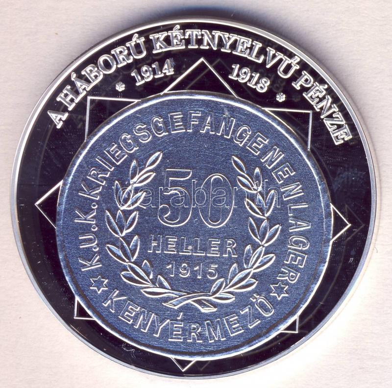 DN "A magyar nemzet pénzérméi - A háború kétnyelvű pénze 1914-1918." Ag (0,999) emlékérem (10,37g) T:PP