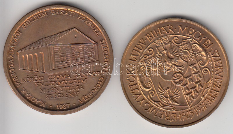 Tóth Sándor (1933-) 1987. "MÉE Hajdú-Bihar Megye / II. Rákóczi György" fényes Br emlékérem (d=42mm) T:1- + Bognár György (1944-) 1987. "Mezőgazdasági Múzeum Baráti Körének Szécsényi Csoportja / Kőrösi Csoma Sándor" fényes Br emlékérem (42,5mm) T:2