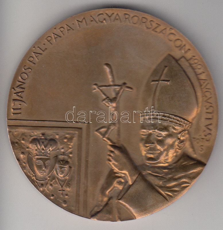 Tóth Sándor (1933-) 1991. "II. János Pál Pápa Magyarországon 1991 Avgvsztvs" aranyozott Br emlékérem (d=65mm) T:2 (aranyozás erősen lekopva)