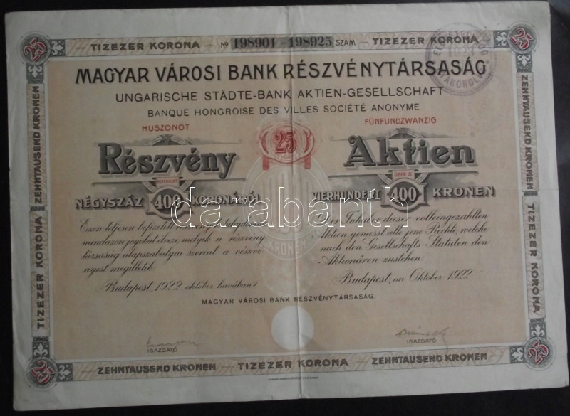 https://www.darabanth.com/en/168-Online-auction/168.0/Numismatics/Shares-and-Tickets~2000351/1922-Magyar-Varosi-Bank-Reszvenytarsasag-25-reszvenye-egyenkent-400K-rol-szelvenyekkel-~II561739