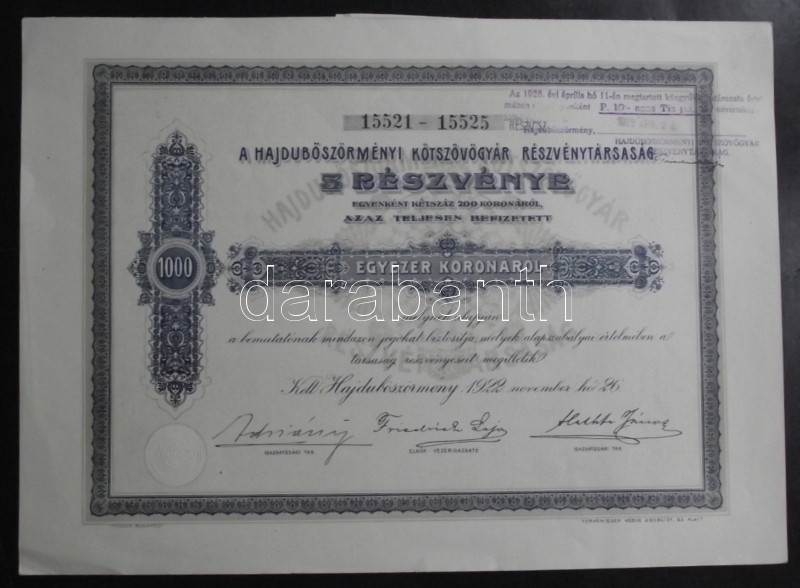 https://www.darabanth.com/en/168-Online-auction/168.0/Numismatics/Shares-and-Tickets~2000351/Hajduboszormeny-1922-Hajduboszormenyi-Kotszovogyar-Reszvenytarsasag-reszvenye-1~II561725
