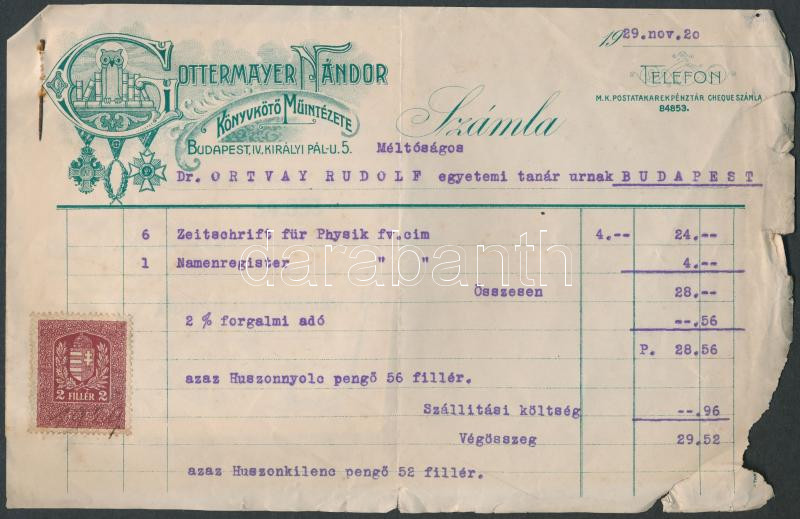 https://www.darabanth.com/en/168-Online-auction/168.0/Other-collectibles/Documents~500024/1930-Gottermayer-Nandor-konyvkoto-fejleces-szamla~II522824