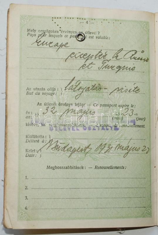 1932 Puhafedeles útlevél