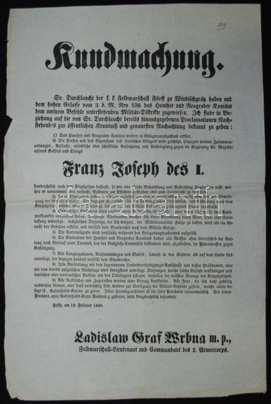 1849 Proclamation of Austrian general count Wrbna