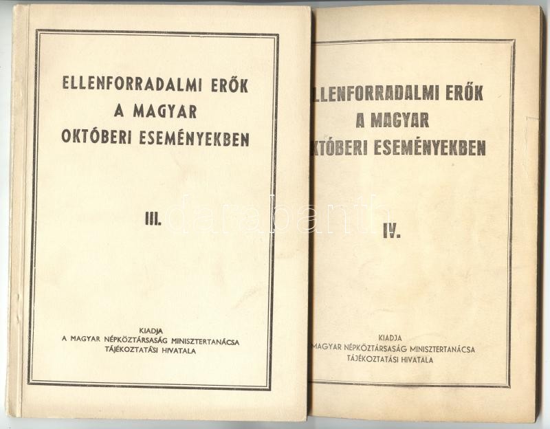 1956 Ellenforradalmi erők a magyar októberi eseményekben. I.-IV. kötet... https://www.darabanth.com/en/168-Online-auction/168.0/Other-collectibles/Historical-documents-manuscripts~500026/1956-Ellenforradalmi-erok-a-magyar-oktoberi-esemenyekben-I-IV-kotetek-Magyar-NepkoztarsasC3~II534738