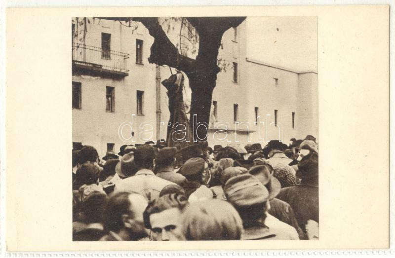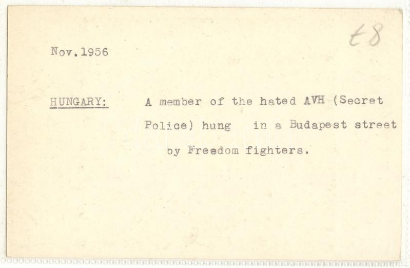 1956 november: Budapest a forradalomban: egy AVH-s felakasztása. Fotó ... https://www.darabanth.com/en/168-Online-auction/168.0/Other-collectibles/Historical-documents-manuscripts~500026/1956-november-Budapest-a-forradalomban-egy-AVH-s-felakasztasa-Foto-kartonlapon--Budapest-in-t~II533797