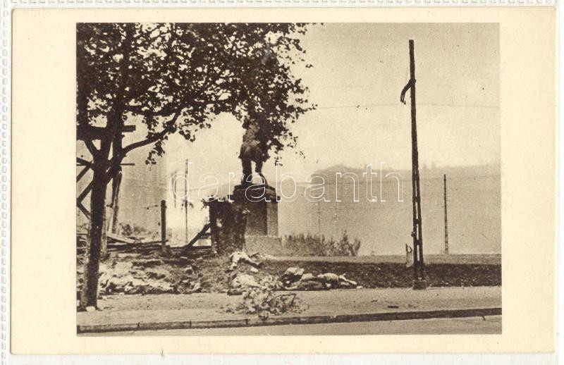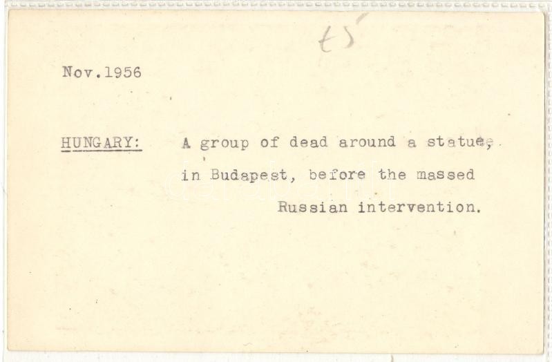 1956 november: Budapest a forradalomban halottak egy szobor körül / Budapest in the revolution: dead bodies around a statue 12x9 cm