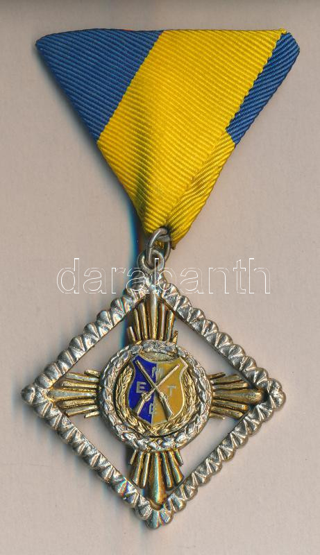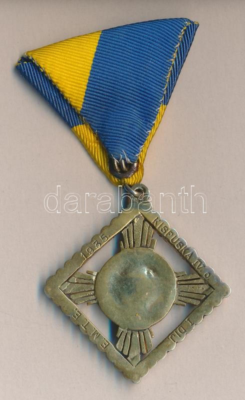 1935. "E.M.T.E. Kispuska IV. o. I. Díj" jelzett aranyozott/zománcozott ezüst lövész kitüntetés szalaggal T:2