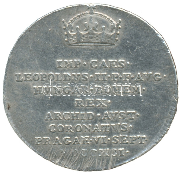 Habsburg Monarchy / Prague 1791. Leopoldus II coronation Ag jeton "IMP CAES LEOPOLDVS II. P F AVG HVNGAR BOHEM REX ARCHID AVST CORONATVS PRAGAE VI. SEPT MDCCXCI / PIETATE ET CONCORDIA" (20mm/2.18g) C:VF scratched