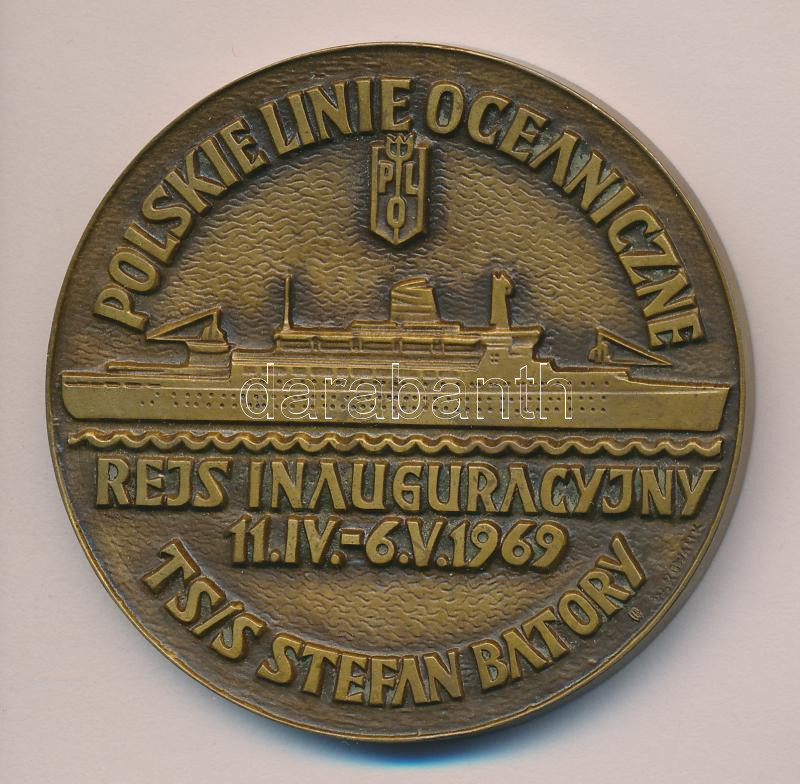 Lengyelország 1969. Báthory István 1. óceánjáró útjának emlékére kiadott Br emlékérem (59mm) szign: W. Kowalk eredeti dísztokban T:1-