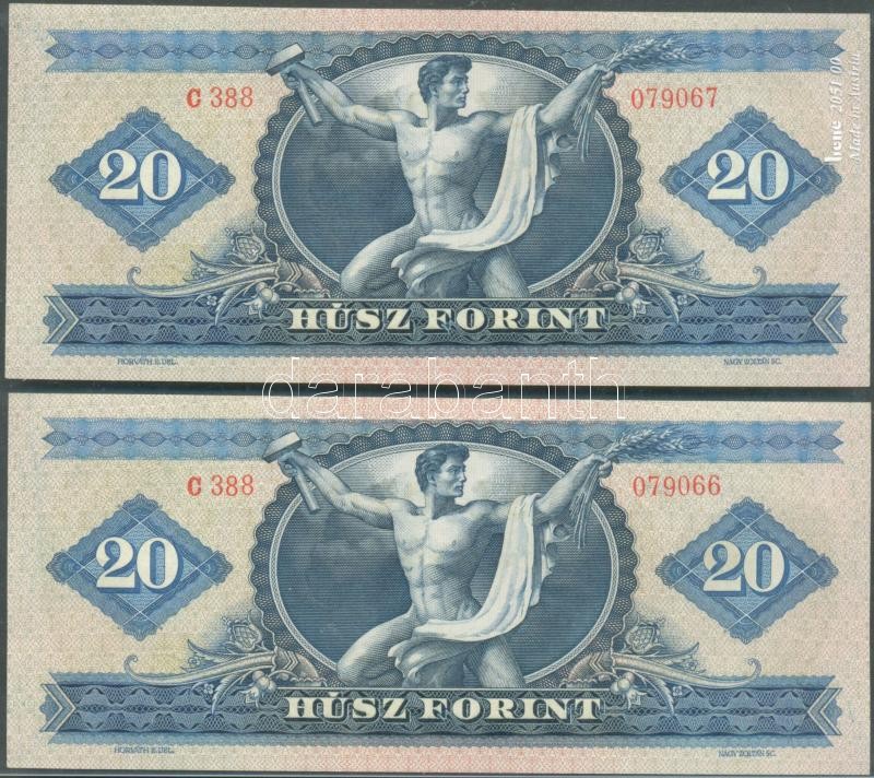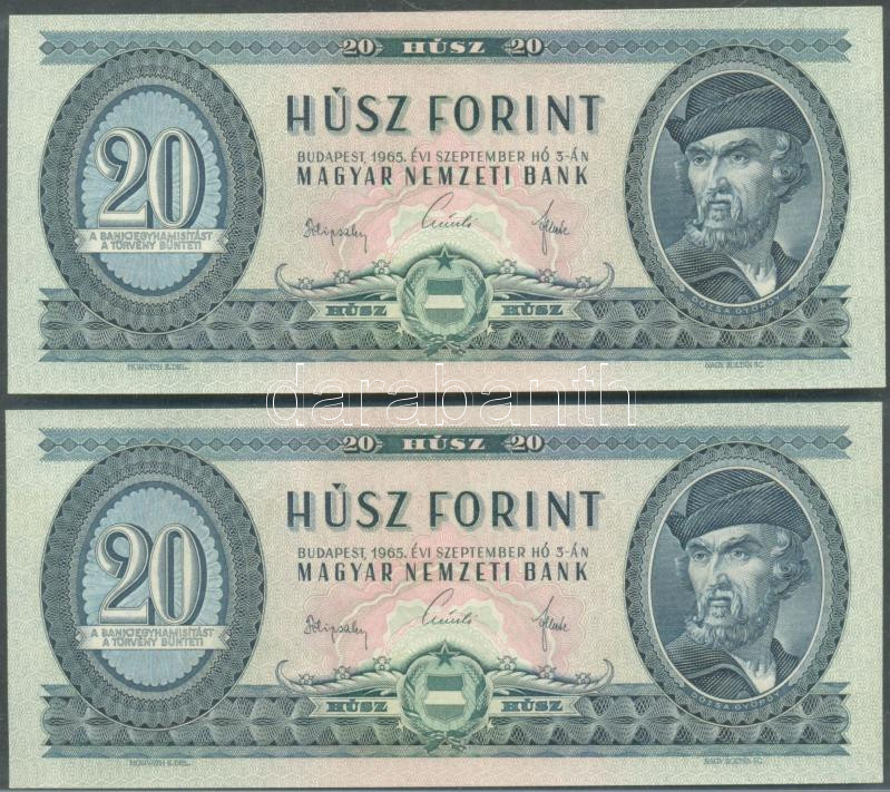1965. 20Ft (2x) egymást követő sorszámmal! T:I