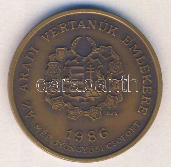 Bognár György (1944-) 1986. "MÉE Gyöngyösi Csoport - Aradi Vértanúk / Damjanich János" Br emlékérem (d=42mm) T:1