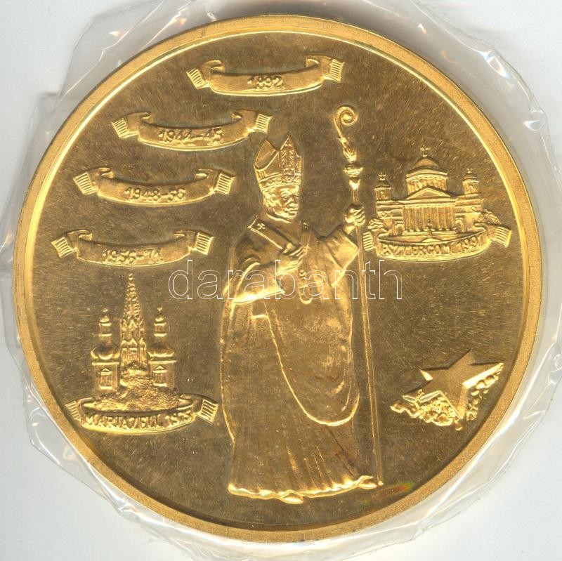 Bognár György (1944-) 1991. "Mindszenty József Bíboros Hercegprímás 1892-1975" nagyméretű aranyozott emlékérem (65mm) T:P