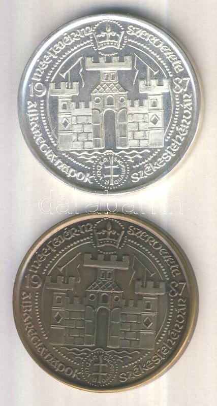 Fritz Mihály (1947-) / Szabó Géza (1939-) 1987. "MÉE Fejér megyei Szervezete Székesfehérvár-Zsigmond" Ag(0.900) és Br emlékérem (35,88g/42,5mm) pár T:PP,1