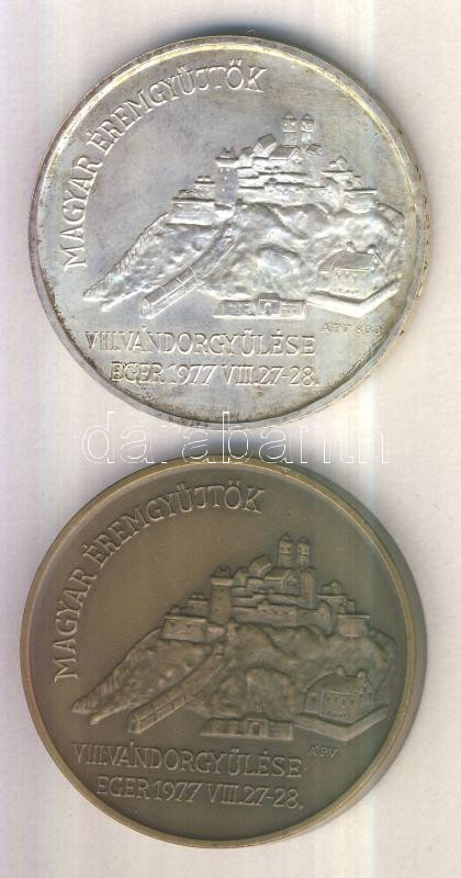 Képíró Zoltán (1944-1981-) / ÁPV 1977. "MÉE VIII. Vándorgyűlése Eger / Dobó István" Ag(0.800)/25,27g és Br emlékérem pár (42,5mm) T:1