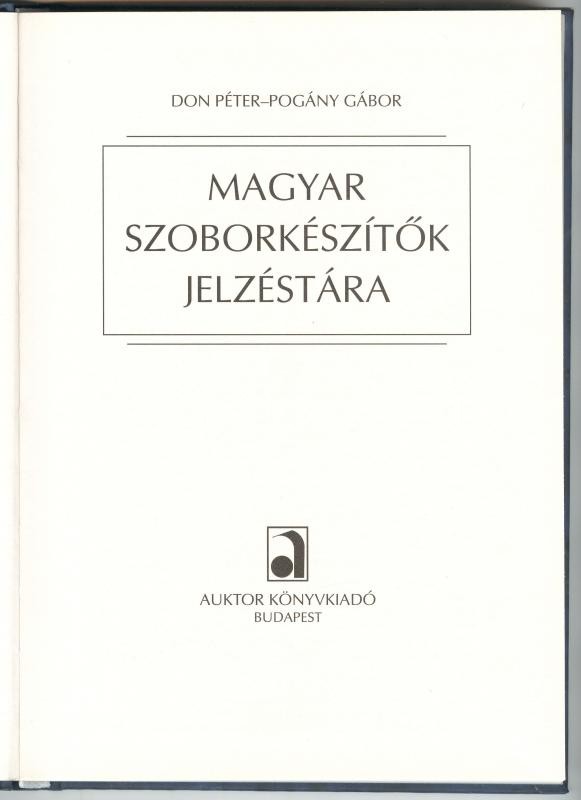 https://www.darabanth.com/en/169-Online-auction/169.0/Other-collectibles/Books-Architecture-Art~4000030/Don-Peter--Pogany-Gabor-Magyar-szoborkeszitok-jelzestara-Bp-2003-Auktor-Uj-allapotba~II544240