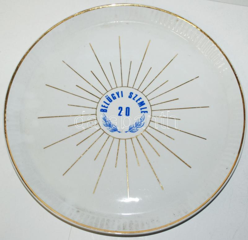Hollóházi nagy lapos tányér "Belügyi szemle 20" felirattal, hibátlan, ...