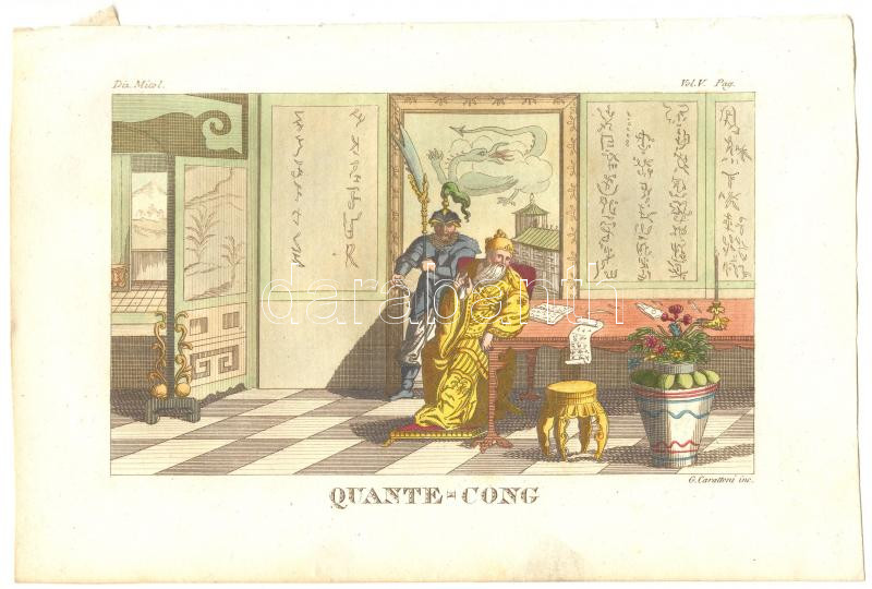Quante-Cong, színezett acélmetszet az 1823-ban Milánóban kiadott Dizionario d'ogni mitologica e antichita vol. V illusztrációi közül, 15x23 cm