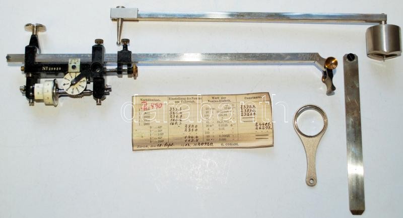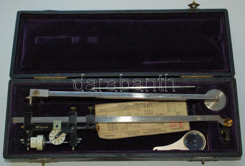 1913 G Conradi síkmérő műszer, jó állapotban, jelzett, eredeti dobozában, átváltási táblázattal/