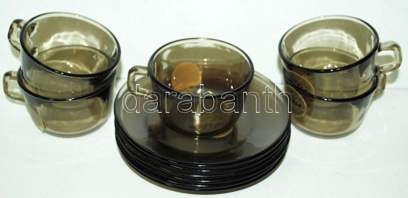 Hat darab modern üveg mokkás csésze és csészealj, hibátlanok