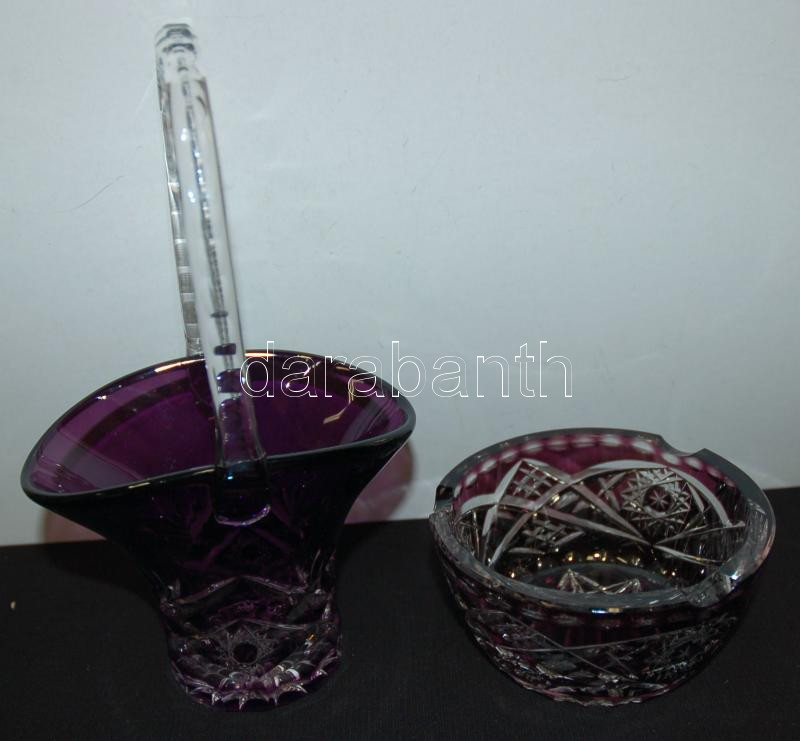Lila színű kristály hamutál 12x6cm és kosárka 22x13cm