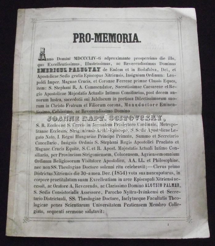 1858 Palugyay Imre nyitrai püspök, egyházi író Gyászbeszéde melyet Scitovszky János püspök tartott / Memorial speech of bishop Palugyay, held by cardinal Scitovsky 10p.