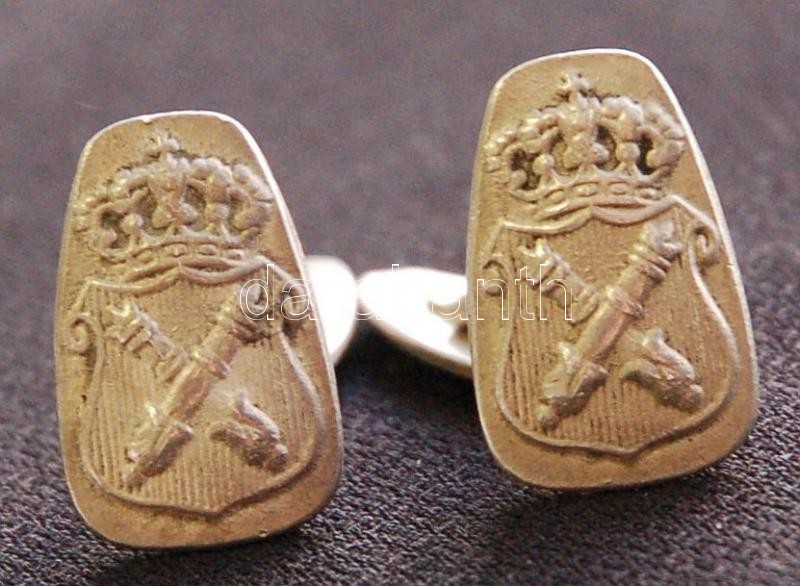 Antik ezüst (Ag) mandzsettagomb pár családi címerrel /
