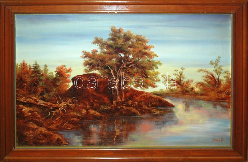 Bacski jelzéssel: Magányos folyópart, olaj, vászon, keretben, 60x80cm