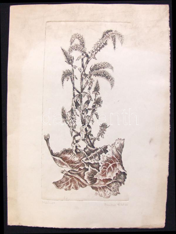 Bencze Klári (1925): Muhar, rézkarc, papír, 24×12 cm