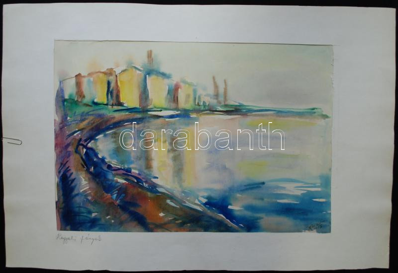 Blahos Rudolf (1917-1986): Reggeli fények (1947), akvarell, papír, jel...