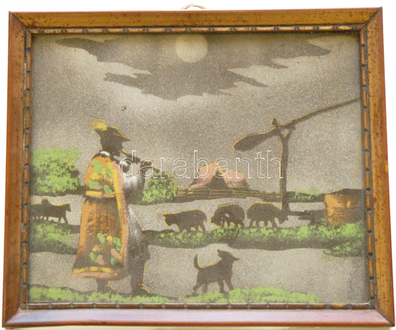 Jelzés nélkül: Éjjel a gémeskútnál, szövetkép, üvegezett keretben, 28x...
