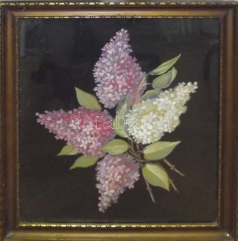 Jelzés nélkül: Orgonacsokor, tempera-selyem, üvegezett keretben 32x39c...