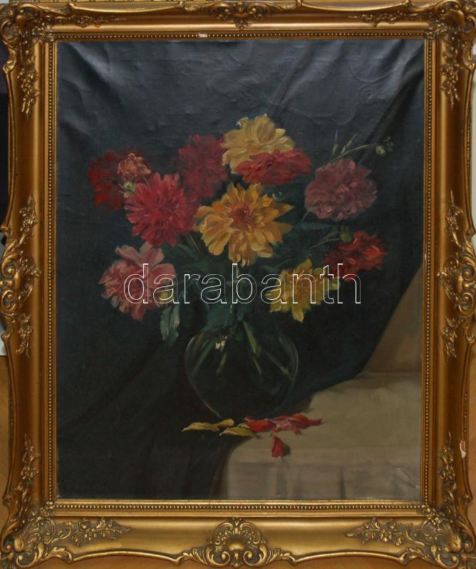 Kámán Titusz: Virágcsendélet, olaj, vászon, jelzett, két apró sérüléssel, keretben 60x80 cm