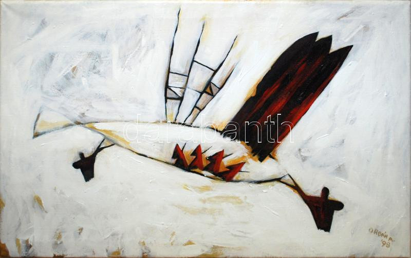 Orbán Attila (1958): Hal fekete szárnnyal, akril, vászon, jelzett, 72x101cm