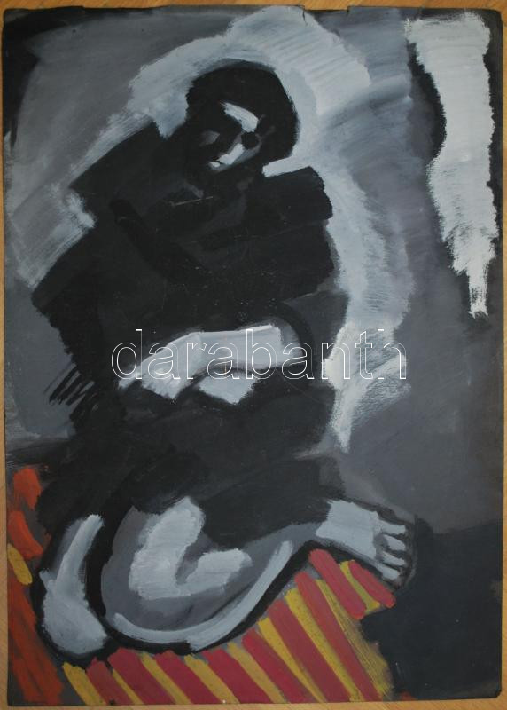 Swierkiewicz Róbert (1942-): Térdelő nő, tempera, papír, jelzés nélkül...